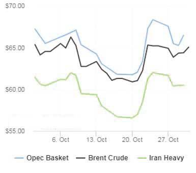 قيمت دلار پساز آنكه جروم پاول، رييس فدرال رزرو امريكا در روز چهارشنبه گفت كاهش نرخ بهره در ماه دسامبر را تضمين نميكند افزايش يافت. هر دوي اين شاخصهاي نفتي حدود 3 درصد در ماه اكتبر كاهش قيمت داشتند. انتظار ميرود افزايش عرضه از رشد تقاضا در سال جاري ميلادي پيشي بگيرد. سازمان كشورهاي صادركننده نفت و توليدكنندگان بزرگ غيراوپك توليد خود را افزايش دادهاند تا سهم بازار را به دست آورند. افزايش عرضه همچنين تأثير تحريمهاي غربي عليه صادرات نفت روسيه به چين و هند را خنثي ميكند. طبق گفته برخي منابع، ائتلاف اوپك پلاس توليد خود را در ماه دسامبر افزايش خواهد داد. 8 عضو اين ائتلاف طي چند ماه هدف توليد خود را تا بيشاز 2.7 ميليون بشكه در روز افزايش دادهاند كه حدود 2.5 درصد از عرضه جهاني نفت را شامل ميشود. اطلاعات موسسه جودي عربستان نشان ميدهد صادرات نفت اين كشور در ماه اوت به بالاترين رقم طي 6 ماه گذشته يعني 6.407 ميليون بشكه در روز رسيده است و اين روند صعودي ادامه دارد.