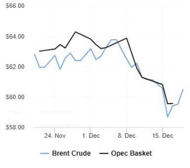 به گزارش ايسنا، قيمت آتي نفت برنت با ۶۵ سنت معادل ۱.۱ درصد افزايش، در ۶۰ دلار و ۴۷ سنت در هر بشكه بسته شد. قيمت نفت وست تگزاس اينترمديت (WTI) امريكا با ۵۱ سنت معادل ۰.۹ درصد افزايش، در ۵۶ دلار و ۶۶ سنت در هر بشكه بسته شد. با افزايش قيمت در معاملات روز جمعه، كاهش هفتگي نفت برنت و وست تگزاس اينترمديت به حدود يك درصد محدود شد. هر دو شاخص بازار جهاني، هفته قبل، حدود چهار درصد كاهش داشتند. تحليلگران شركت مشاوره انرژي «ريتربوش و همكاران» در يادداشتي نوشتند: بازار نفت در حالي كه منتظر سيگنالهاي بيشتر در مورد مذاكرات صلح اوكراين و روسيه و همچنين اخبار جديد ونزوئلا در مورد تاثير احتمالي محاصره آشكار نفتكشها توسط ترامپ بود، رشد كمي را ثبت كرد. در حالي كه دولت ترامپ در حال تقويت نيروهاي نظامي در كاراييب است، ماركو روبيو، وزير امور خارجه امريكا، روز جمعه به خبرنگاران گفت كه امريكا نگران تشديد تنش با روسيه در مورد ونزوئلا نيست. توني سايكامور، تحليلگر شركت اي جي، گفت: عدم اطمينان در مورد چگونگي اجراي قصد ترامپ براي جلوگيري از ورود و خروج نفتكشهاي تحريمشده به ونزوئلا، نرخ اضافي مربوط ريسك ژئوپليتيكي را كاهش داده است. دو منبع آگاه از عمليات صادرات نفت ونزوئلا گفتند: ونزوئلا كه حدود يك درصد از عرضه جهاني نفت را تامين ميكند، پنجشنبه گذشته، به دو كشتي تحريم نشده اجازه داد تا به سمت چين حركت كنند. دادههاي رديابي كشتي نشان ميدهد كه يك نفتكش تحريم شده حامل حدود ۳۰۰ هزار بشكه نفتا از روسيه، اواخر روز پنجشنبه، وارد آبهاي ونزوئلا شد، در حالي كه سه نفتكش ديگر كه تحت تحريم هستند، يا ناوبري را متوقف كردند يا مسيرشان را در اقيانوس اطلس تغيير دادند. بر اساس گزارش رويترز، دادههاي شركت خدمات انرژي امريكايي بيكر هيوز نشان داد تعداد دكلهاي حفاري در حوزه پرمين در غرب تگزاس و شرق نيومكزيكو، هفته گذشته، با سه حلقه كاهش، به ۲۴۶ حلقه رسيد كه كمترين ميزان از اوت ۲۰۲۱ است. تعداد دكلها شاخص اوليهاي از توليد در ماههاي آينده است. تعداد كمتر ميتواند به كاهش توليد در آينده اشاره داشته باشد.