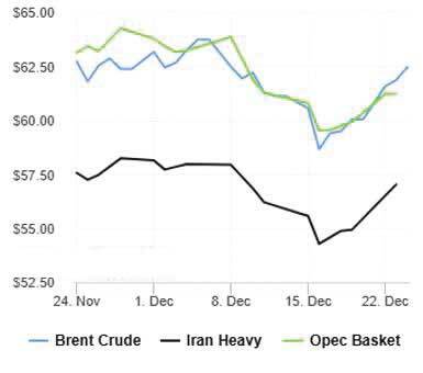 به گزارش ايسنا، قيمت نفت برنت با چهار سنت معادل ۰.۰۶ درصد افزايش، به ۶۲ دلار و ۴۲ سنت در هر بشكه رسيد. قيمت نفت وست تگزاس اينترمديت امريكا با سه سنت معادل ۰.۰۵ درصد افزايش، به ۵۸ دلار و ۴۱ سنت در هر بشكه رسيد. قيمت نفت، روز دوشنبه، بيش از ۲ درصد افزايش يافته بود و نفت برنت بزرگترين افزايش روزانه خود را در دو ماه گذشته و نفت خام امريكا بيشترين افزايش را از ۱۴ نوامبر تجربه كردند. قيمتها، روز سهشنبه نيز بيش از ۰.۵ درصد افزايش يافتند. دفتر تحليل اقتصادي وزارت بازرگاني امريكا در برآورد اوليه خود از توليد ناخالص داخلي سه ماهه سوم، روز سهشنبه، اعلام كرد كه اقتصاد ايالات متحده سريعتر از حد انتظار رشد كرده كه تحت تاثير هزينههاي بالاي مصرفكننده بوده است. اين نهاد دولتي اعلام كرد توليد ناخالص داخلي در سه ماهه گذشته، با نرخ سالانه ۴.۳ درصد افزايش يافته كه سريعترين روند از سه ماهه سوم سال ۲۰۲۳ است. توني سايكامور، تحليلگر شركت اي جي، در يادداشتي گفت: «افزايش قيمت شب گذشته با انتشار آمار مطلوب توليد ناخالص داخلي امريكا در سه ماهه سوم و تنشهاي ژئوپليتيكي فزاينده، پشتيباني شد.»شركت «هايتونگ فيوچرز» در گزارشي اعلام كرد اختلال در صادرات ونزوئلا، مهمترين عامل تقويتكننده احساسات بازار بوده و همزمان، حملات مداوم روسيه و اوكراين به زيرساختهاي انرژي يكديگر نيز از قيمتها حمايت كرده است. تحليلگران ميگويند كه دادههاي ذخاير نفت امريكا به عنوان بزرگترين مصرفكننده جهان به دليل اهميت ساير عوامل، توسط بازار ناديده گرفته شد. منابع بازار با استناد به آمار موسسه امريكن پتروليوم در روز سهشنبه گفتند: ذخاير نفت خام امريكا در هفته گذشته، ۲.۳۹ ميليون بشكه افزايش يافته است. همچنين ذخاير بنزين ۱.۰۹ ميليون بشكه و ذخاير فرآوردههاي تقطيري ۶۸۵ هزار بشكه افزايش يافته است. اداره اطلاعات انرژي امريكا، به دليل تعطيلات، دادههاي خود را روز دوشنبه، ديرتر از حد معمول، منتشر خواهد كرد. طبق شركت «هايتونگ فيوچرز» به دليل تاثير تعطيلات در دسامبر، تقاضا براي نفت پالايش شده بهطور موقت به اوج خود رسيد و در نتيجه واكنش بازار به رشد ذخاير محدود بود. دونالد ترامپ، رييسجمهور امريكا، اوايل دسامبر دستور داد تمام نفتكشهاي تحت تحريم كه به ونزوئلا وارد و از آن خارج ميشدند، محاصره شوند كه اين امر صاحبان كشتيها را در حالت آمادهباش نگه داشته است. سرويس نظارتي تانكرتِركر، روز سهشنبه، اعلام كرد كه ابرنفتكش «كلي» با پرچم پاناما كه هفته گذشته ونزوئلا را براي حمل نفت ترك كرده بود، پس از توقيف نفتكشهاي بيشتر توسط امريكا، به آبهاي ونزوئلا بازگشته است. بر اساس گزارش رويترز، پس از آنكه امريكا، اوايل ماه جاري، ابرنفتكش «اسكيپر» را توقيف كرد و دو كشتي ديگر را در روزهاي اخير هدف قرار داد، بيش از دهها كشتي بارگيري شده در ونزوئلا منتظر دستورالعملهاي جديد از سوي مالكان خود هستند.