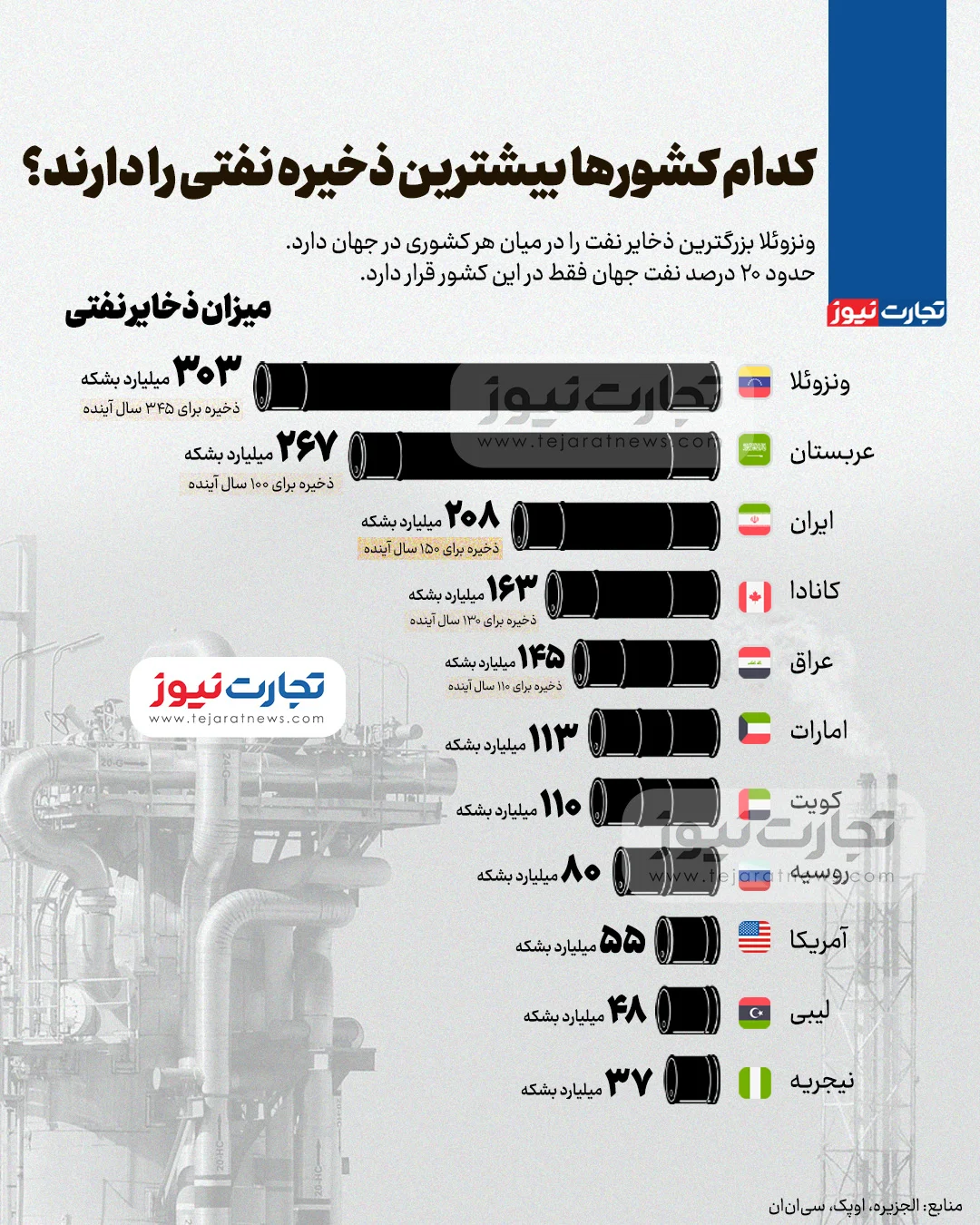 اینفوگرافی | کدام کشورها بیشترین ذخایر نفتی دنیا را دارند؟