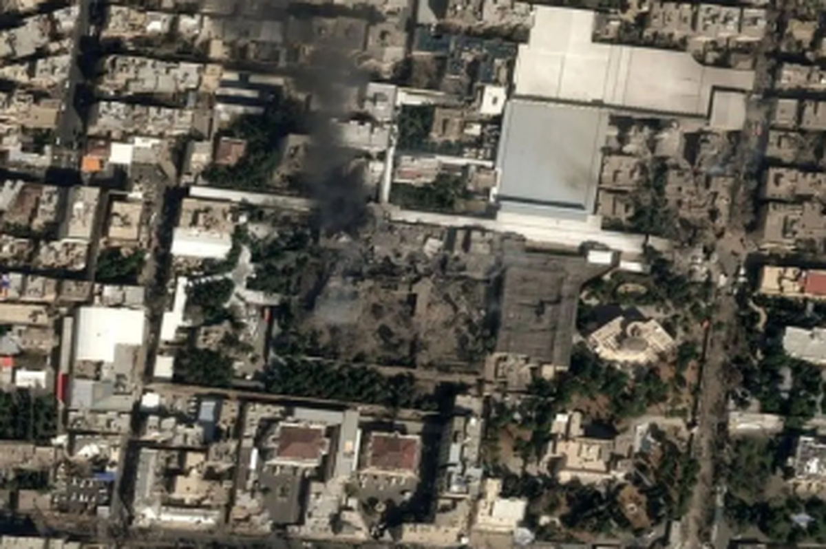 دو ساعت و پنج دقیقه پس از برخاستن جنگندهها، حدود ساعت ۹:۴۰ صبح به وقت تهران، موشکهای دوربرد به مجتمع موردنظر اصابت کردند. در زمان حمله، مقامهای ارشد امنیت ملی ایران در یکی از ساختمانهای این مجموعه حضور داشتند. آیتالله خامنهای در ساختمانی دیگر در نزدیکی آن قرار داشت.