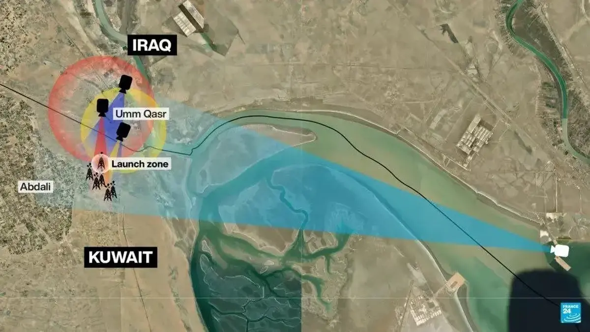 فرانس 24 نوشت: تحلیل تصاویر، از جمله زوایای دوربین و تأخیر صوتی، مکان پرتاب را در داخل کویت، نزدیک تأسیسات نفتی و در فاصله تقریبی ۵۵ کیلومتری از کمپ بوهرینگ (یک پایگاه بزرگ آمریکایی) مشخص می‌کند.