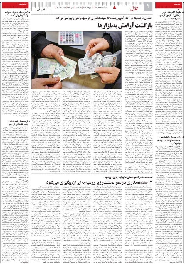 روزنامه تعادل ۱۰ مهر ۱۴۰۳ شماره ۲۸۷۱ صفحه ۲۰۸۳